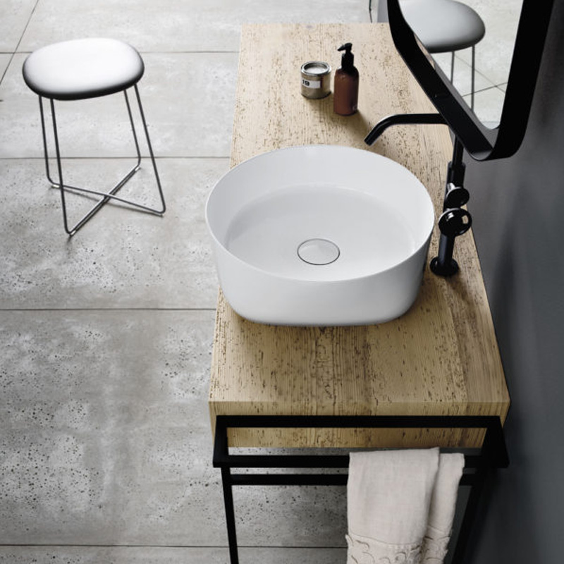 • Lavabo da appoggio in ceramica bianco luicido modello Panier: Diametro 42  x H 14 Cm