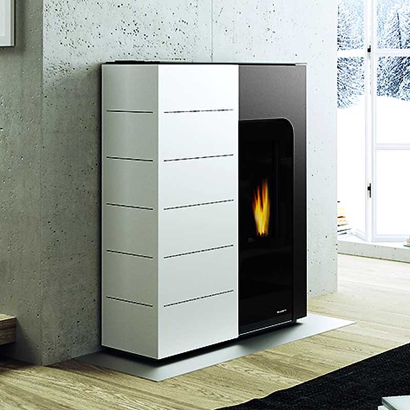 Palazzetti Stufa a Pellet Ginger 14 Kw Acqua Calda. La sua particolarità è il “salvaspazio”: grazie alla sua ridotta profondità, si riesce a posizionare ovunque, dal sottoscala all’angolino del soggiorno. Il suo design innovativo, riesce a donare tono e stile all’intero ambiente, donando, inoltre, classe, eleganza e raffinatezza. Costruita interamente in acciaio verniciato e vetro, ed è proposta in 3 colori diversi, ovvero Bianco, Nero e Caffellatte. Proposta nella potenza: 14 Kw.